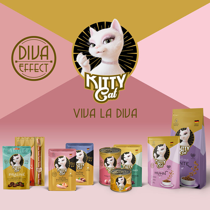 Ready for “the tasty adventures of KITTY Cat & DOGGY Dog”? One bite is all it takes to start the transformation! A white cat turns into an eccentric diva with a penchant for drama, a black Labrador becomes a cool hero - humans' best buddy. KITTY and DOGGY are two extraordinary, animated characters, being the cheeky new stars in food heaven with their respective slogans "VIVA LA DIVA" and "Celebrate Doggy Style". They offer you a wide range of dry and wet food and snacks which not only offers premium quality, but also provides the unique HERO and DIVA EFFECT. And the best of it? All of this comes at an unbeatable price.