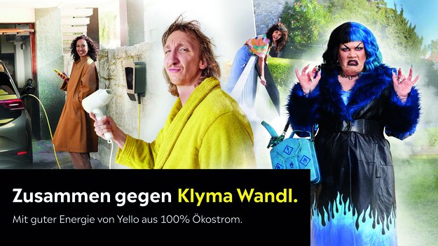 Yello personifies climate change: Klyma Wandl, the angry fictional character, finds e-bikes, solar power plants and green electricity really annoying. Played by character actress Gisa Flake, Klyma Wandl runs through the world as a shrill monster and insults everyone who enjoys sustainable solutions. But the people watching them only get a calm shrug of the shoulders from their complaining. Because they are trying to counteract climate change with lots of good energy and sustainable solutions. This infuriates Klyma Wandl.