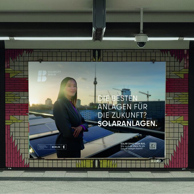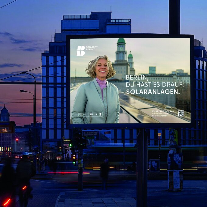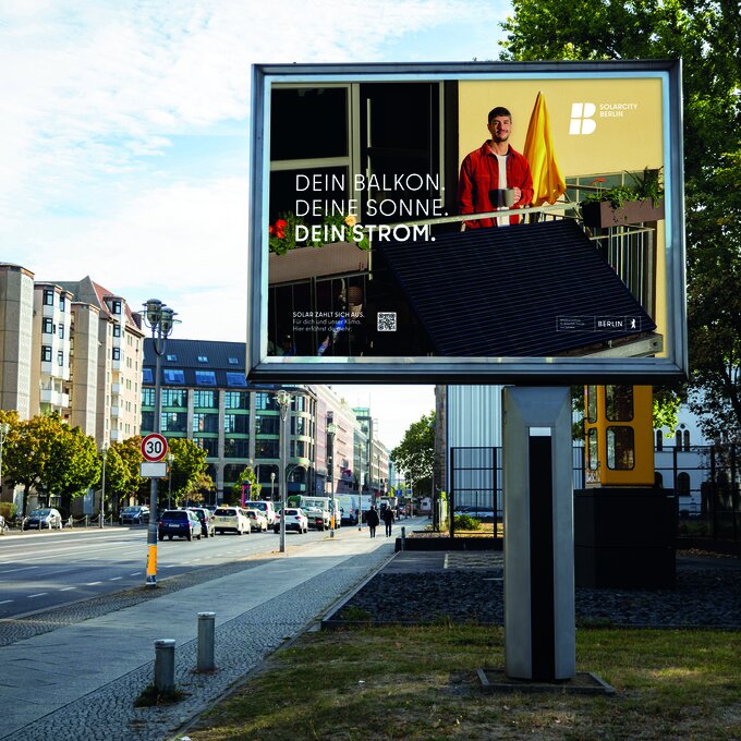 With the Masterplan Solarcity, Berlin aims to increase the share of solar power in its energy mix to 25 % by 2050. The campaign raises awareness among individuals and businesses about solar energy and encourages the installation of PV systems on rooftops and balconies. Based on research highlighting gaps in knowledge about solar energy's benefits, the campaign “Solar Pays Off” targets diverse groups with four visuals showcasing real installations in Berlin. Using a 360° approach with OOH, social media, print, and online channels, it boosted website visits and PV applications, advancing Berlin's climate goals.