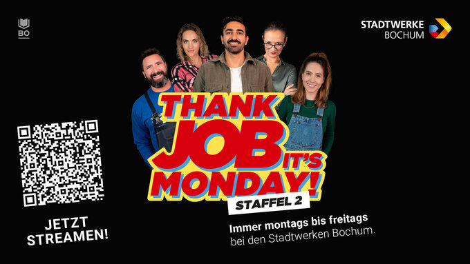 Stadtwerke Bochum is taking a bold and tongue-in-cheek approach to recruitment with a new employer branding campaign. “We need to be noticed by young people and show that we have long since left the dusty image of bureaucracy behind us,” says Managing Director Frank Thiel. Under the slogan “Thank Job it's Monday”, short mockumentary-style video clips can be found on social media channels and the website every Monday. Inspired by formats such as “Stromberg” or “Die Discounter”, two seasons of five episodes each were shot - with great commitment from the Stadtwerke employees in front of and behind the camera.