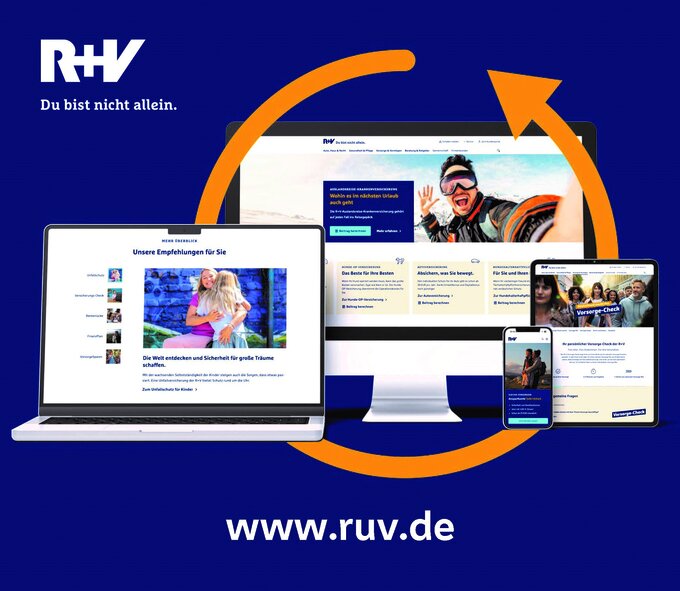R+V connects established decentralized sales structures through the Volks- und Raiffeisenbanken with new digital access channels in its omnichannel market approach. The website ruv.de occupies a crucial position in the omnichannel model and serves as the central digital interface with the customer. The focus is on making complex insurance topics accessible, showcasing the brand and cooperative DNA, and ensuring frictionless transitions between touchpoints. This is our promise to the visitors of ruv.de.