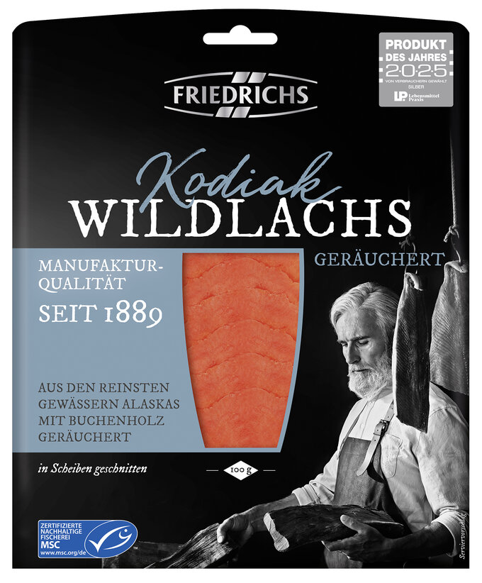 FRIEDRICHS, founded in 1889, is Germany's oldest premium brand for smoked salmon. As a pioneer, the company imported wild salmon from Alaska as early as 1914 and repeatedly set standards in its industry that still apply today. After takeover of the trademark rights by TINEMA GmbH in 2022 the traditional brand was revitalized through a comprehensive strategy and creative project. The focus was placed on a new positioning, target group analysis, product adaptations and a modern look & feel. Since the successful relaunch in October 2023, FRIEDRICHS has achieved extraordinary success.