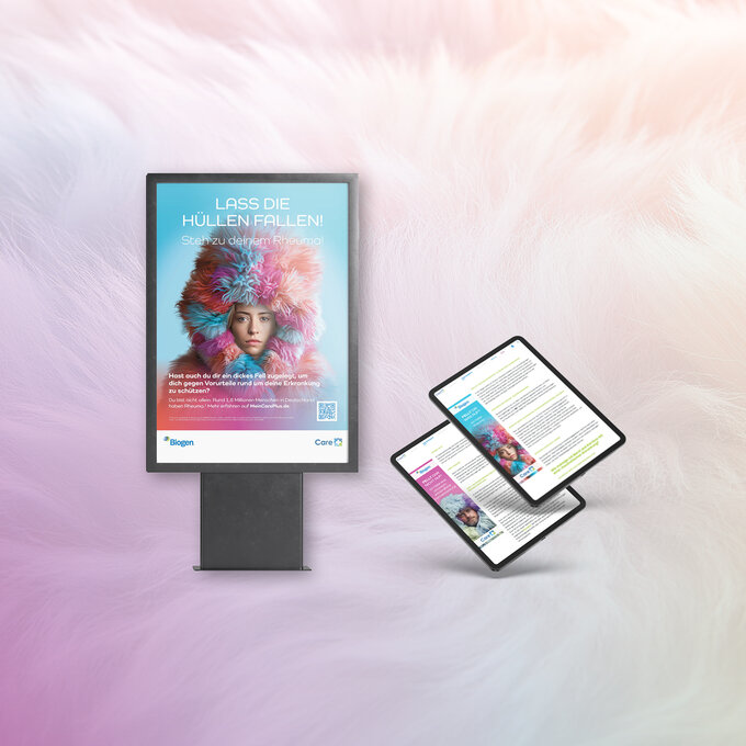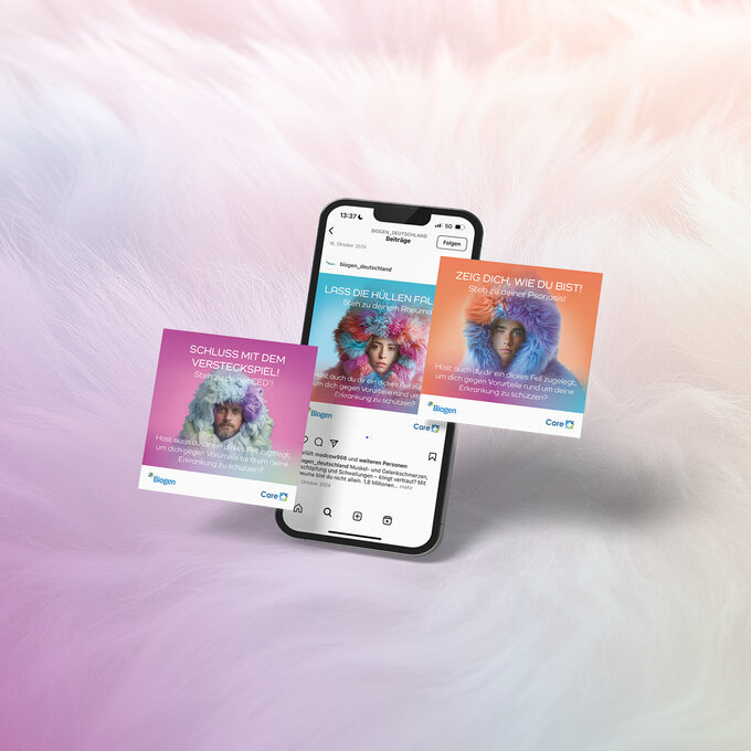 A thick skin for more awareness. Awareness campaign for patients with a chronic inflammatory disease. Chronic inflammatory diseases are associated with many challenges: In addition to therapy and dealing with the disease on a daily basis, many patients are also confronted with prejudices and educational work. To arm themselves for all of this, those affected often need thick skin. With this campaign, Biogen wants to encourage those affected and bring the disease more into the public eye.