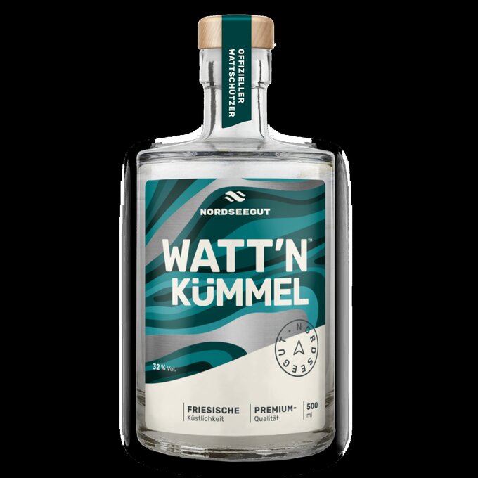 Watt`n caraway á 500ml: The mild, full-bodied Watt'n Kümmel not only tastes great ice-cold, but is also a pure delight when warm! And the Watt'n Kümmel also does something good. For every 500ml bottle of this product sold, one euro is donated to the Wadden Sea Protection Station.