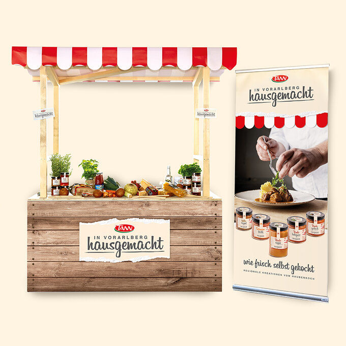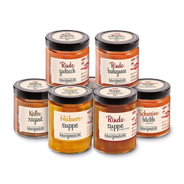 Brand development SPAR TANN “hausgemacht”. Nationally, depending on the region, the federal state is communicated as the origin (for example “Vorarlberg”). Basically, the concept design is very reduced and authentic. The basic impression “like from the weekly market” should not appear too striking due to the brand/sub-brand. On the contrary, it should have a handwritten appearance in the broadest sense. The SPAR TANN brand is placed on the back of the label as a processor and sender of quality and the best regional products. Even if not every day – this type of “quick but high-quality” cuisine is becoming more and more socially acceptable. Photo credits: Markus Gmeiner.