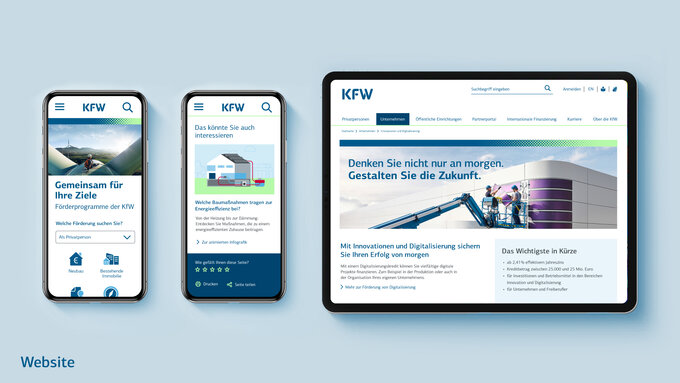 Die Unternehmensstrategie der KfW wurde neu ausgerichtet. Zusätzlich ergab eine Markenstudie Anpassungsbedarf bei der Markenpositionierung. Vision 2030: die KfW soll die digitale Transformations- und Förderbank werden. Aus diesem Anspruch heraus, wurde ein neues Corporate Design entwickelt, das die KfW in ihrer neuen Rolle als Impulsgeberin und Ermöglicherin der gesellschaftlichen und wirtschaftlichen Transformation präsentiert und dabei den Kern der Marke bewahrt.
