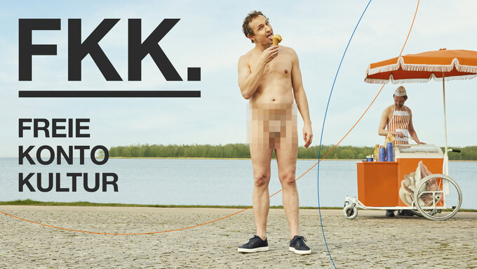 Der Begriff „FKK“ steht in unserer Kampagne für die „Freie Konto Kultur“. Mit einem Augenzwinkern nehmen wir darin Bezug auf die „Freie Körper Kultur“ im Osten, die für viele Menschen mit Freiheit, Unabhängigkeit und Unbekümmertheit verbunden ist. Ungezwungen, frei, in Gleichheit und fern der Möglichkeit, abgehört zu werden. Wir übertragen den Freiheitsgedanken und machen ihn lautstark und plakativ zur Freien Konto Kultur für unsere Girokonten.