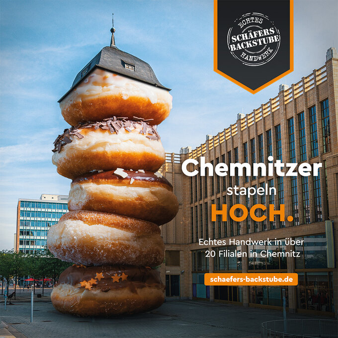 Chemnitz ist 2025 Kulturhauptstadt Europas – die perfekte Bühne für Schäfers Backstube, um sich mit einer kreativen Imagekampagne ins Rampenlicht zu stellen. Wir haben die köstlichen Backwaren kurzerhand zu Kulturgut erklärt, sie in Wahrzeichen der Stadt integriert und Chemnitz unsere Liebe erklärt. Drei Signature-Motive prägten die Stadt, begleitet von Social Media und PR. Die Kampagne erreichte über 460.000 Menschen und führte zu einem Mehrumsatz von über 200.000 €. Ein beeindruckender Beweis, wie wirkungsvoll lokale Imagekampagnen sein können!