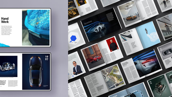75 Jahre Porsche – der integrierte Bericht feiert die Meilensteine des Sportwagenherstellers und vereint Geschäftsbericht, Magazin und Nachhaltigkeitsbericht auf höchstem Niveau. Mit einem High-End-Ansatz, großen Emotionen und einem klaren Blick in die Zukunft spiegelt das Design die Luxuspositionierung der Marke wider – kanalübergreifend und mediengerecht in Print und Online. Jede Magazinstory zeichnet sich durch eine individuelle Visualität aus, wobei Layout, Bildsprache, Typografie und Veredelung die jeweiligen Inhalte optimal unterstützen. Der Online-Report sorgt mit Videos und interaktiven Elementen für ein zeitgemäßes Nutzererlebnis.