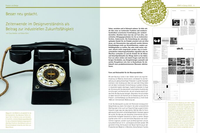 „VDWF im Dialog“ ist das unabhängige Print-Magazin des Verbands Deutscher Werkzeug- und Formenbauer. Es erscheint viermal im Jahr in einer Auflage von rund 13.000 Exemplaren und richtet sich an Werkzeugmacher, ihre Kunden sowie potenzielle Nachwuchskräfte. In klarer Sprache, mit moderner Gestaltung vermittelt es komplexe Inhalte aus Forschung, Entwicklung und Herausforderungen des Tagesgeschäfts. Es verbindet Brancheneinblicke mit übergreifenden Perspektiven und beleuchtet anspruchsvolle Inhalte aus Praxis und Wissenschaft. Im Fokus stehen Menschen, Produkte und Prozesse – journalistisch und layouttechnisch passgenau für jede Zielgruppe.