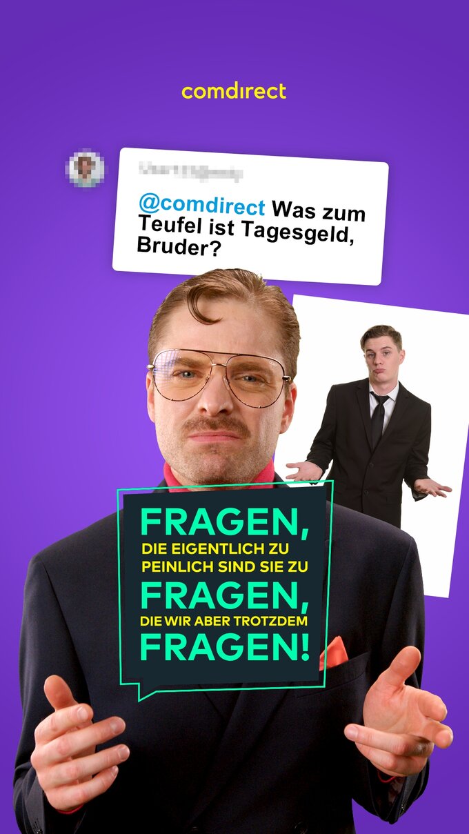FAQ MONEY: Die große finanzielle Aufschlauungsoffensive von comdirect. Naa, steckst du auch bombenfest im #moneystruggle? Wachst nachts mit Angstschweiß auf, weil du dich immer noch nicht um deine Altersvorsorge gekümmert hast? Und kriegst Panik, weil deine Freunde von ETF-Portfolios sabbeln, während du so gaaar keine Ahnung von dem ganzen Finanzkram hast? We got u: Wir erklären ALLES, was du schon immer über Geld wissen wolltest und dich nie getraut hast zu fragen. Nichts ist zu basic. Nichts ist zu peinlich. Nichts ist zu doof. Und nur bei uns mit „Kraaaass, ich hab’s gecheckt!“- Garantie.