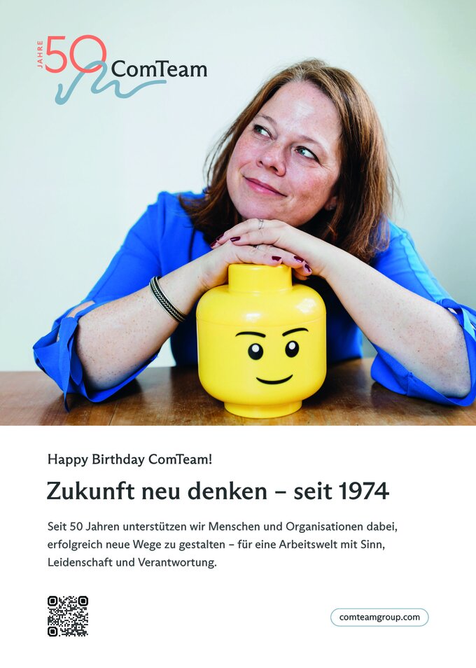 Zum 50-jährigen Jubiläum hat ComTeam 2024 seine Marke neu ausgerichtet: weg vom statischen, hin zu einem agilen, zukunftsorientierten Auftritt. Das bisherige Logo mit Leuchtturm wich einer dynamischen Change-Linie, die Wandel symbolisiert. Das neue Corporate Design macht die Markenwerte unmittelbarer spürbar; weitere Assets wie eine Illustrationswelt erleichtern das tägliche Arbeiten. Gleichzeitig transportiert der Website-Relaunch als wichtiger Touchpoint das neue Corporate Design und bietet eine strukturierte, nutzerzentrierte Customer Journey, die ComTeam als führenden Partner für die Begleitung von Veränderungsprozessen positioniert.