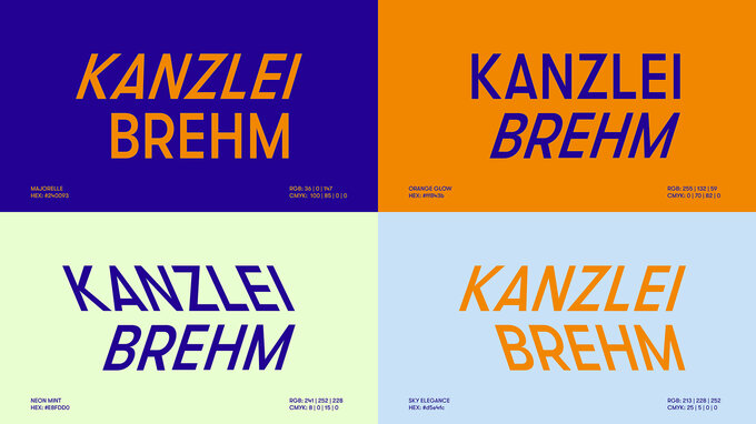Kanzleien vermitteln allgemein klassische Werte wie Sicherheit, Kompetenz und Seriosität. Mit Nähe zur Medienwelt steigt die Chance auf einen individuellen Markenauftritt abseits des Branchenstandards. Das Team der Kanzlei Brehm vertritt Dienstleister und Unternehmen in der Wahrnehmung von Markenrecht und Wettbewerbsrecht. Daher erzeugt das neue Corporate Design der Kanzlei ein ausdrucksvolles Markenprofil, das auf die gestaltende Business- und Kreativwelt abzielt: agil, dynamisch und flexibel.