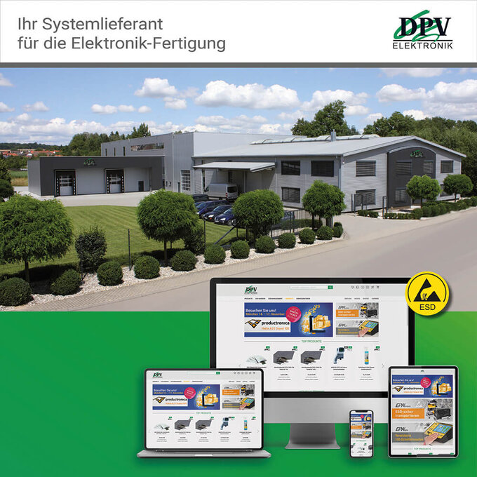Die DPV Elektronik-Service GmbH ist seit über 30 Jahren ein zuverlässiger Partner für ESD-Schutz und Fertigungsausrüstung. Mit dem Schwerpunkt Herstellung und Vertrieb von Fertigungsmitteln für die Elektronikindustrie beliefern wir Kunden weltweit. Unser Produktsortiment stieg dabei bis heute auf mehr als 30.000 Artikel an. Seit Mitte 2023 unterstützt ein kleines Marketing-Team intern die ganzheitliche Weiterentwicklung des Corporate Designs im Unternehmen, um die Marke „DPV Elektronik“ weiter erfolgreich zu stärken. Die erarbeiteten Ergebnisse, die wir hier nur anreißen können, werden in einem sich stets aktualisierenden Manual manifestiert.