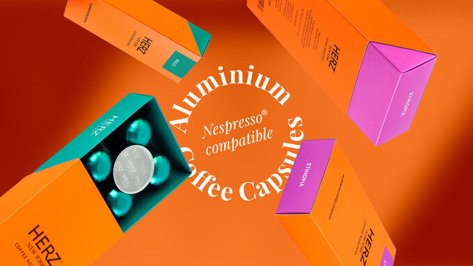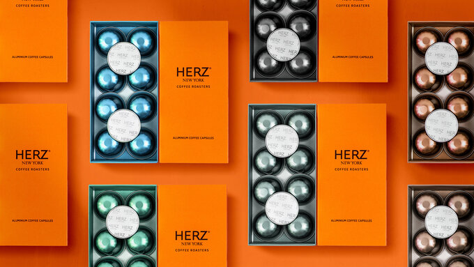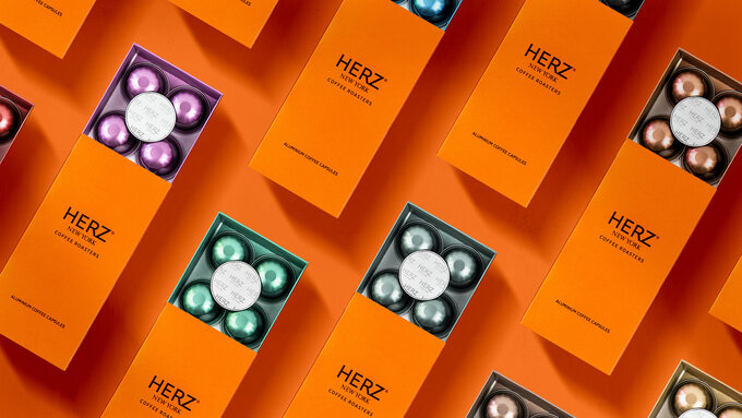 Die für die Kaffeemarke Herz entwickelte Verpackung besticht durch ihr klares und minimalistisches Design. Die leuchtende Farbe zieht die Aufmerksamkeit auf sich und sorgt für eine markante Präsenz im Regal.