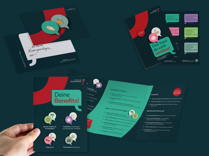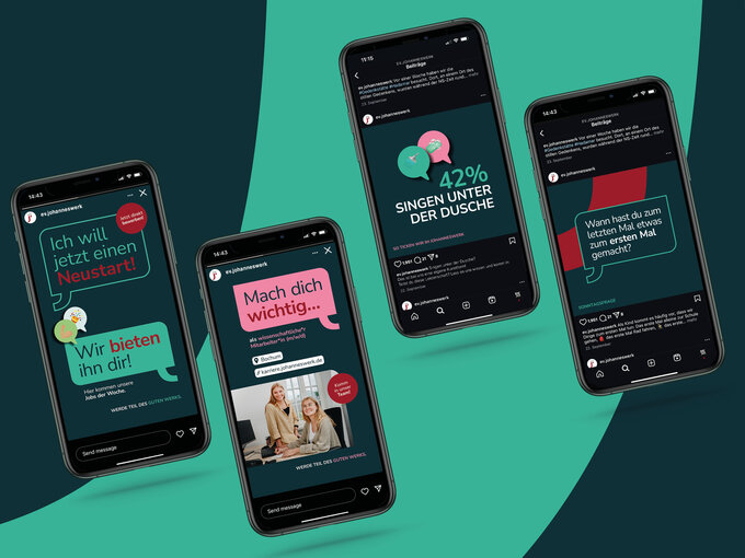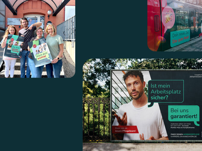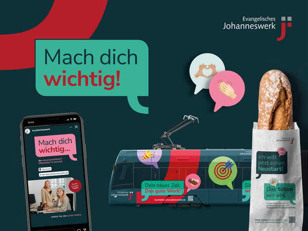 In der Arbeitgebermarke werden die Gestaltungselemente der Unternehmensmarke facettenreich weiterentwickelt. Als inklusives und vielfältiges Team positioniert sich das „gute Werk“ nun gezielt als attraktiver Arbeitgeber. Mit dem Claim „Mach dich wichtig“ wird den Mitarbeitenden höchste Anerkennung entgegengebracht. Er vereint Wertschätzung und Selbstwirksamkeit, ist klar verständlich und laut. Dabei bedient sich der Claim einer direkten, unmittelbaren Ansprache, um gezielt die individuelle Bedeutung jedes und jeder Einzelnen hervorzuheben – ein Signal an aktuelle und zukünftige Mitarbeitende, das Gemeinschaft und Vielfalt erlebbar macht.