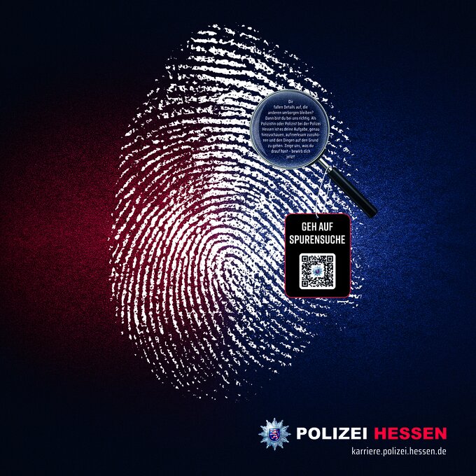 Ein mysteriöses Visual, ein QR-Code und dahinter verborgen: Eine interaktive Augmented Reality-Spurensuche. Für die Nachwuchsgewinnung der hessischen Polizei wurde das Medium „Plakat“ und mit der Online-Gaming-Welt zu einer aufmerksamkeitsstarken Recruiting-Kampagne verschmolzen, um besonders die junge Kernzielgruppe (16 bis 20 Jahre) zu erreichen und vor allem: Zu begeistern! Über einen QR-Code auf City-Light-Plakaten gelangen die Jugendlichen beim Warten auf den Bus zu einem virtuellen Tatort im Sujet. Haben sie alle Spuren per Klick gesichert, folgt direkt der Aufruf zur Bewerbung.