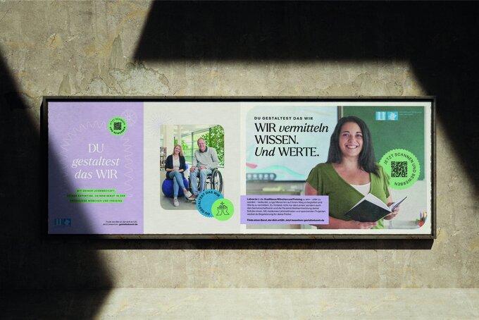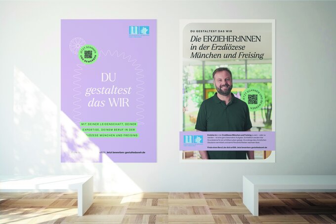 In der Erzdiözese München und Freising widmen sich täglich rund 16.000 Mitarbeiter*innen an vielen Stellen, Aufträgen, Ämtern und Berufen der sinnstiftenden Arbeit. Immer mit dem Ziel Großes für Kirche und Gesellschaft zu leisten – und das in vielfältigen Berufsbildern wie Bildung, Seelsorge, Beratung, Begleitung und Verwaltung. Dieser Sinnhaftigkeit galt es mit einem zeitgemäßen Design den Rücken zu stärken und auf diese Weise den modernen Charakter, die Perspektiven und Vielseitigkeit der Arbeitgebermarke zu unterstreichen. All das, um den Vorurteilen gegenüber einer kirchlichen Organisation effektiv etwas entgegenzusetzen. Mit Erfolg.
