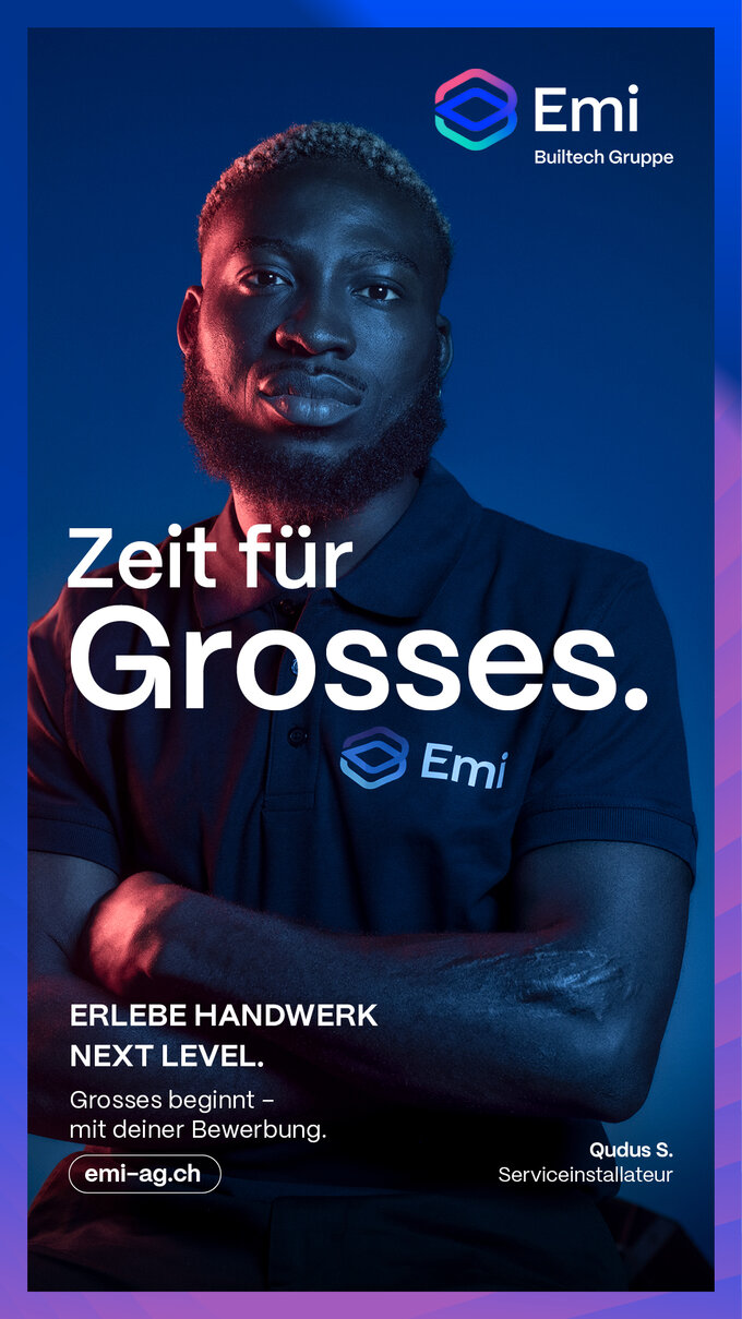 Mit der Kampagne „Zeit für Großes“ setzt Builtech neue Maßstäbe im Employer Branding und präsentiert sich als innovativer Arbeitgeber im Handwerk. Unsere größte Kampagne zeigt authentisch eigene Mitarbeiter in einem smarten Channel-Mix. Ziel ist es, die Relevanz des Handwerks in den Fokus zu rücken, Nachwuchskräfte zu begeistern und Builtech als attraktive Arbeitgebermarke zu platzieren. Die Kampagne präsentiert starke Botschaften, zeigt den Stolz der Mitarbeiter auf ihre Berufe sowie die Vielfalt und Perspektiven im Handwerk. So stärken wir die Wahrnehmung des Handwerks und schaffen eine nachhaltige Verbindung zur Zielgruppe.