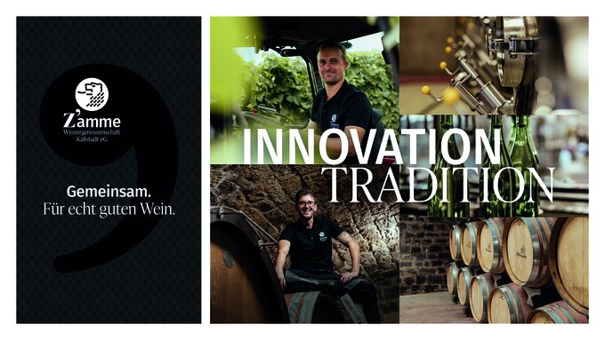 Guter Wein entsteht zusammen – nach diesem Prinzip arbeitet die Winzergenossenschaft Kallstadt eG seit über 120 Jahren. Sie verbindet Tradition mit Innovation, bleibt ihren Wurzeln treu und setzt auf nachhaltige, moderne Technik. Der neue Markenauftritt macht ihre Werte sichtbar. „Z’amme“ – pfälzisch für „zusammen“ – symbolisiert als zentrales Logo-Element die gelebte Gemeinschaft. Wofür sich die Genossenschaft einsetzt, bringt der Claim prägnant auf den Punkt: „Für echt guten Wein aus der Pfalz.“
