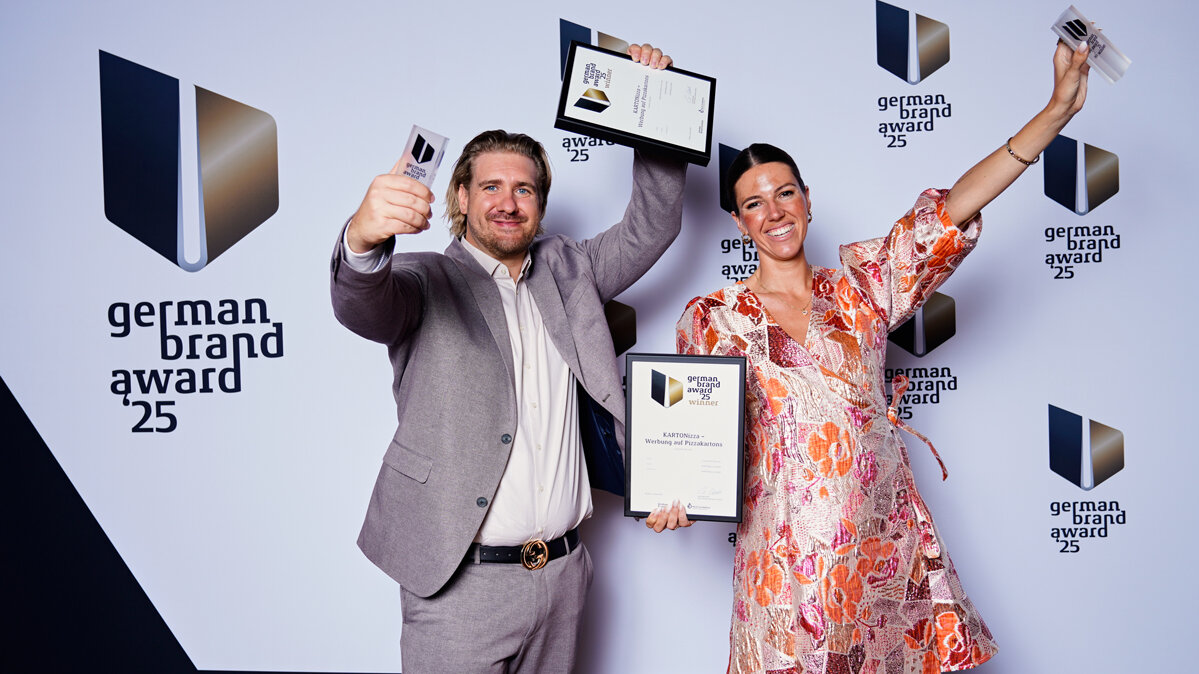 Dabei hilft sicher auch der Erfolg beim German Brand Award 2025, bei dem das Duo gleich doppelt ausgezeichnet wurde: mit dem Winner-Titel Newcomer Brand of the Year und Corporate Service. Die Begründung der Jury: KARTONizza zeige, „wie wirkungsvoll Markenkommunikation im Alltag verankert werden kann.“ Das Projekt kombiniere kreative Ansprache mit messbarer Reichweite und mache Offline-Werbung datenbasiert analysierbar. Für die Gründer ein Meilenstein: „Ein solcher Award stärkt einem den Rücken, vor allem wenn man mit größeren Kunden spricht. Er trägt nach außen, dass wir nicht nur irgendein Startup mit einer netten Idee sind, sondern dass bei uns mehr dahintersteckt – etwas, das preisverdächtig ist.“