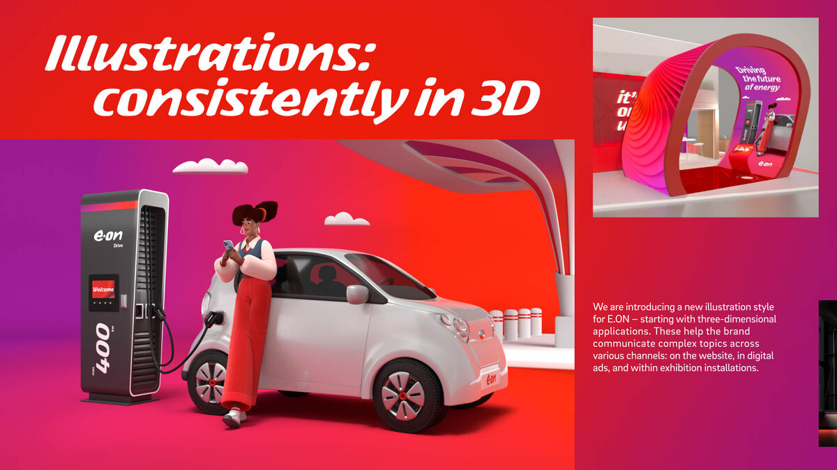 Der neue Markenauftritt setzt auf Reduktion und Prägnanz: Das ikonische E.ON-Roterhält mehr Raum, das Logo dient als Ausgangspunkt für sämtliche Marken-Assets. So entsteht ein klarer, konsistenter Auftritt, der die Jury überzeugte.